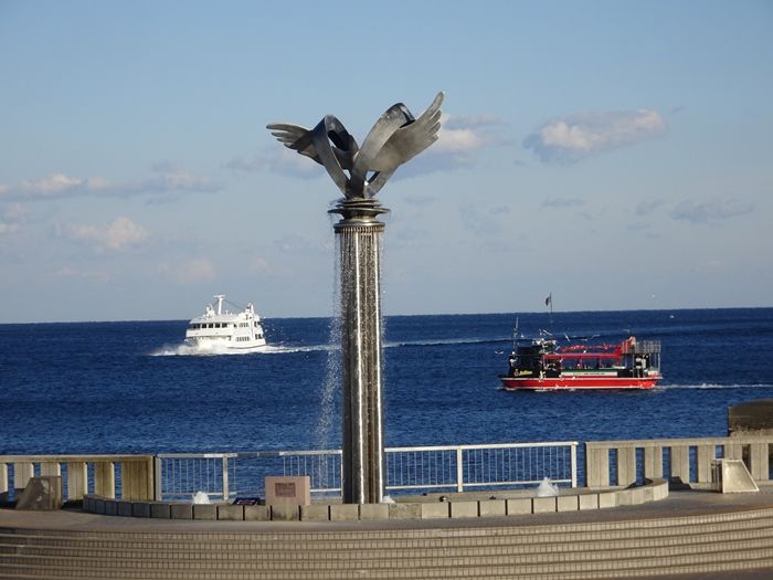 テラス尖端の噴水は恋人達が愛を誓い合う事の出来るモニュメント。