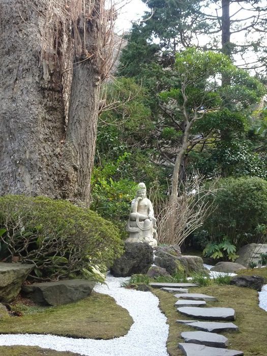山門を潜ると参道脇には美しい苔と白砂の庭園が拡がっていた。
