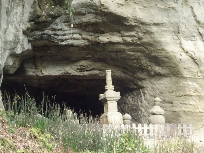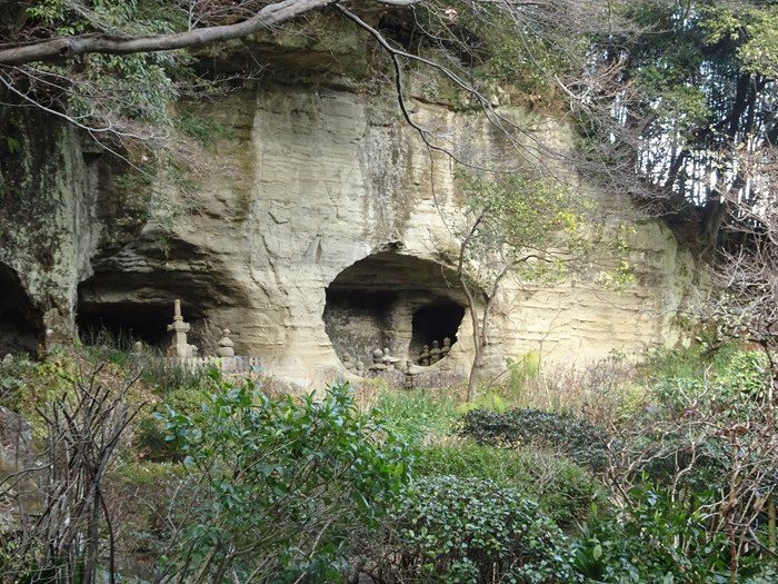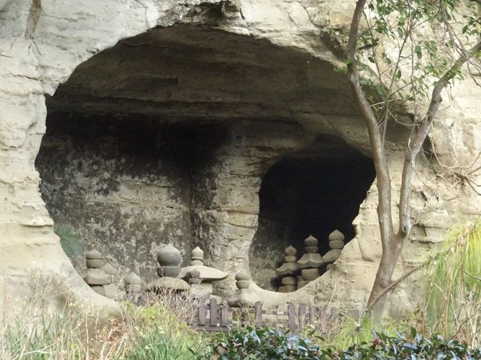 やぐらの中には五輪塔や宝篋印塔が並んでいるのが見えた。