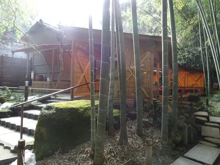 茶席・休耕庵。竹の庭を見ながら抹茶を楽しめる場所。