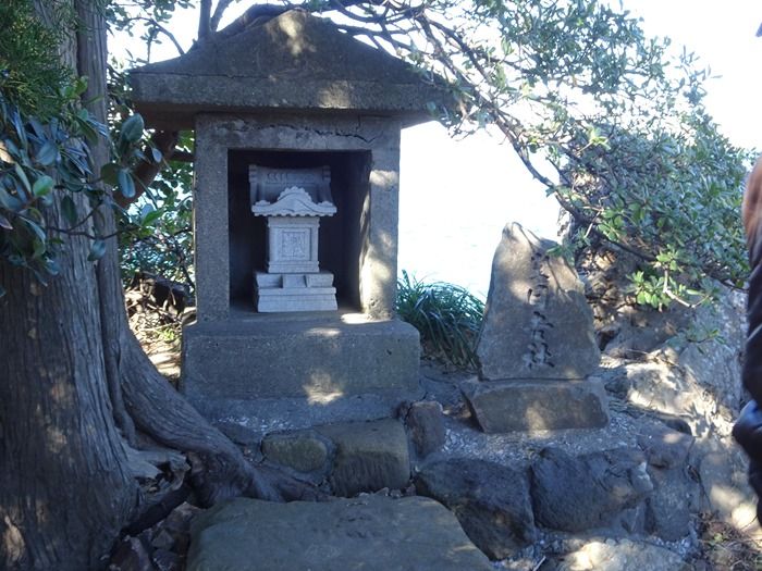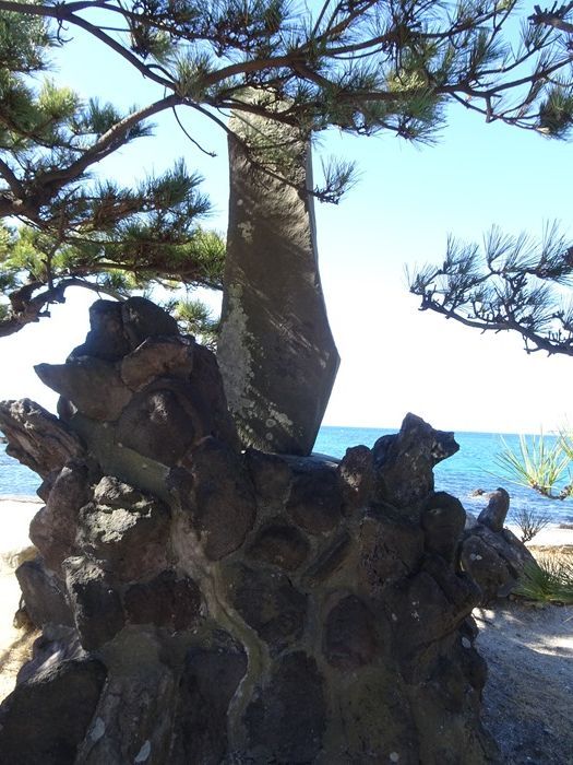 岸壁に根付いたものといわれていると。古木が海上にのり出した姿は珍しいと。