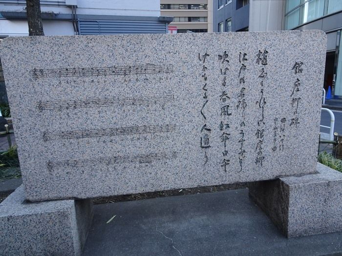 西条八十作詞、中山晋平作曲「 銀座の柳 」⇐リンク の歌碑。
