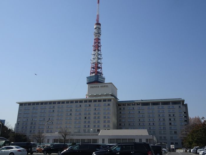 東京プリンスホテルの後ろに東京タワーが見えた。