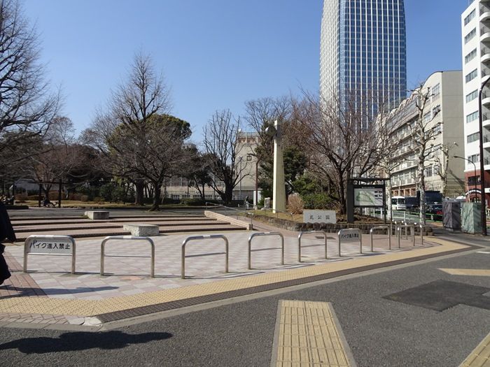 変った。 都は園地改修にあたり原形を残すとともにペルリ提督像と遣米使節団記念碑を