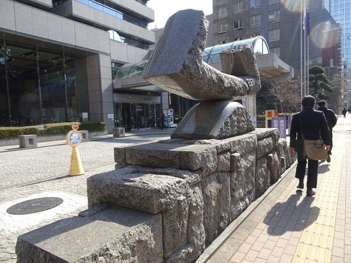 港区役所前のモニュメント。