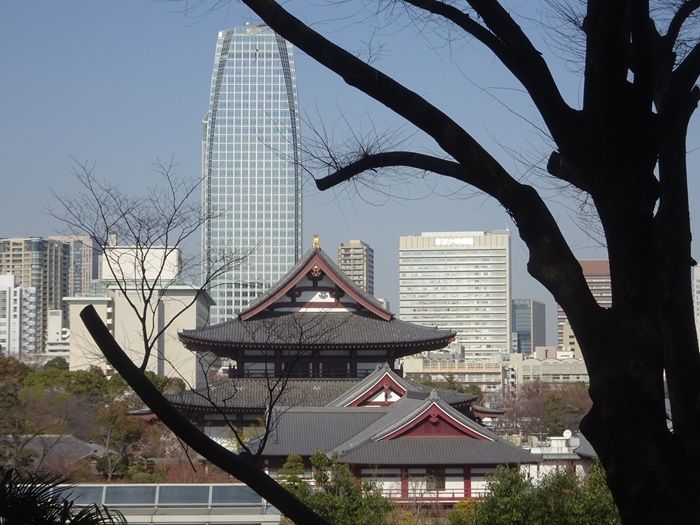 古墳の丘の上から増上寺と187mの高さの愛宕グリーンヒルズ。