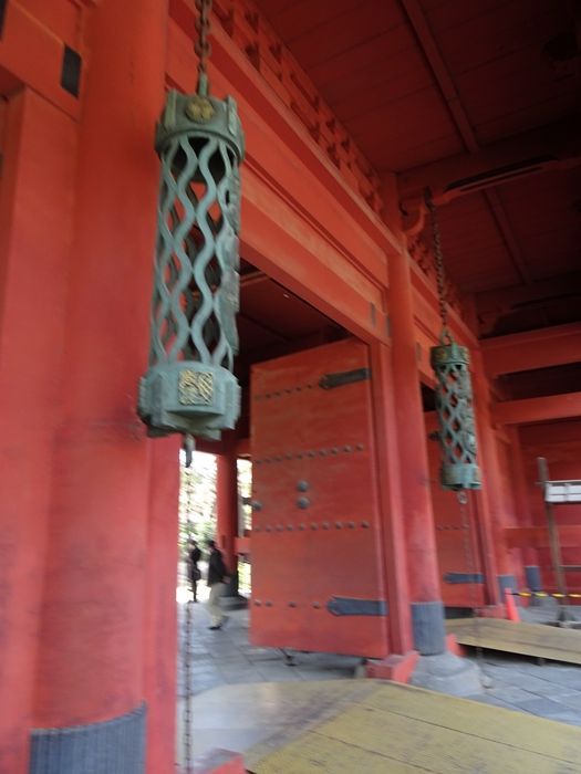 三門にぶら下がる対の燭台?ぶら下げるタイプの火袋?