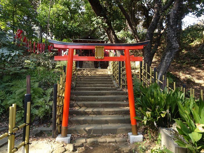 丸山古墳上にあった。随身稲荷の由来は、増上寺がこの地に移建当時桑名より迎えた