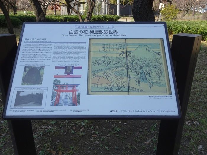 芝東照宮の横に約70本の紅梅・白梅の梅林があり、「銀世界の梅」と呼ばれている。