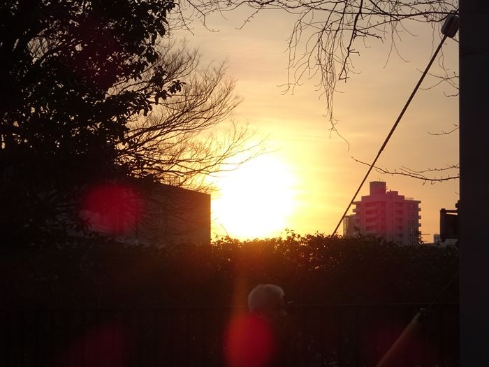 品川駅に向かって歩くと右手に美しい夕日&夕焼けが。
