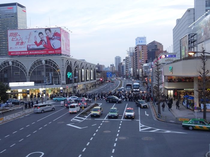 この日の仕事を終えた多くの帰宅者が横断歩道を渡っていた。