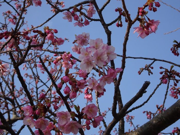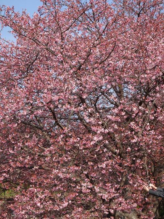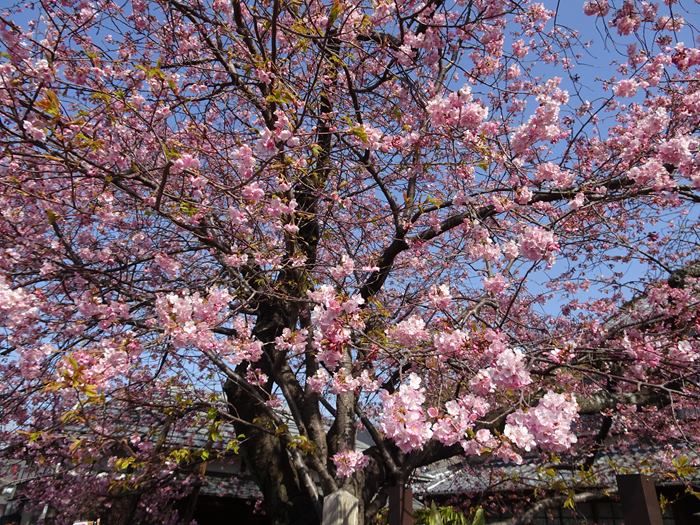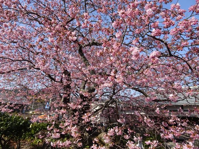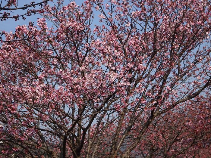 満開になる桜。この桜は本州でも早咲きの種類に分類され開花の過程を楽しめ更に満開を