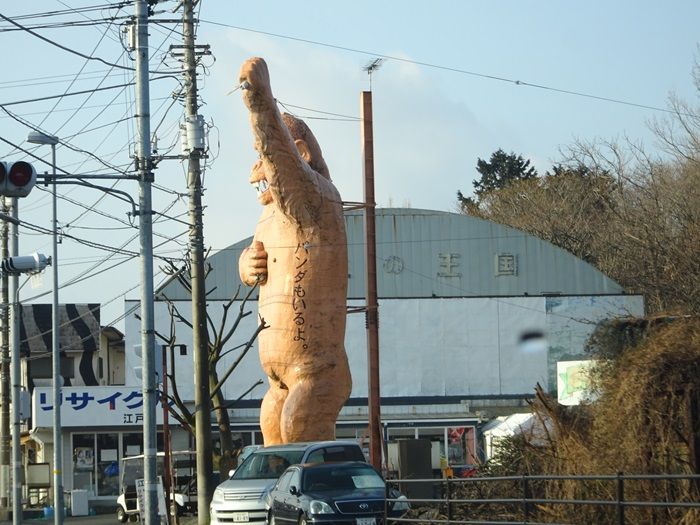 駐車場にいる巨大ゴリラ。真っ先に股間に目が行き、レディだと推測。