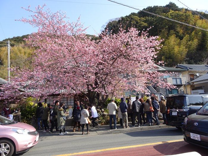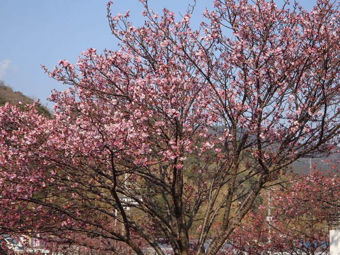 河津桜の原木は、伊豆急河津駅から天城山へ向かって1.2kmの地点、河津町田中の