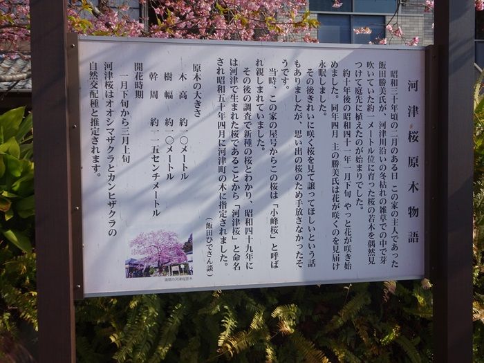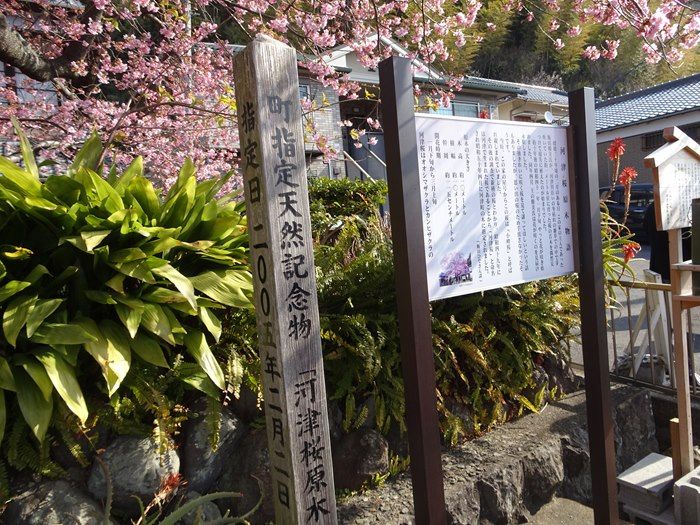 河津桜の原木を、河津町田中の飯田勝美氏(故人)が1955年(昭和30年)頃、偶然発見した