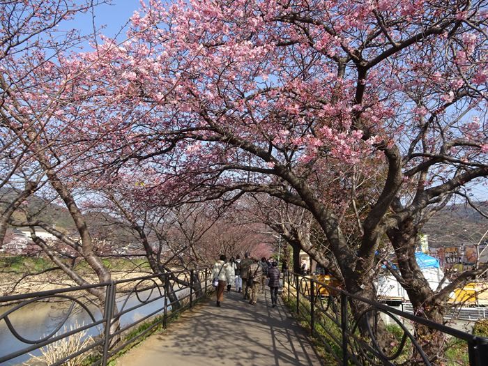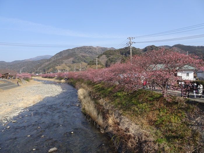 8:30過ぎにスムーズに駐車場に車を駐め、河津川沿いの河津桜を楽しむ。