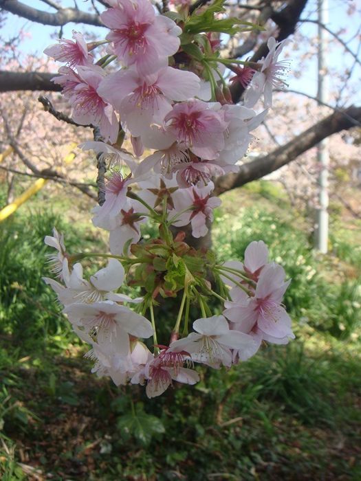 河津桜はオオシマザクラとカンヒザクラの自然交配種と推定されていると。