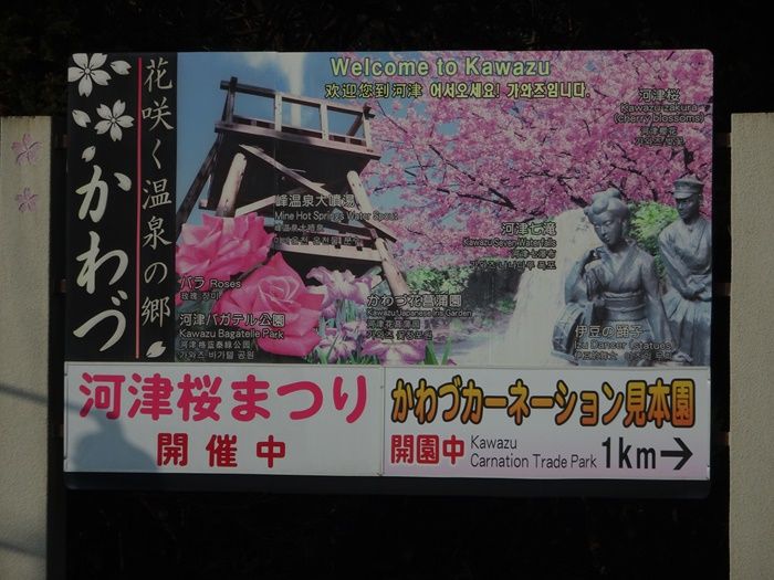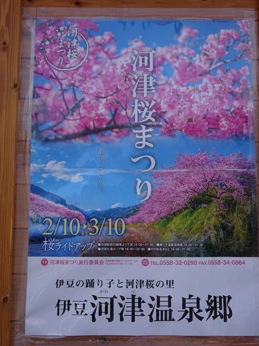 WELCOMEボードには「河津さくらまつり 開催中」の文字が。