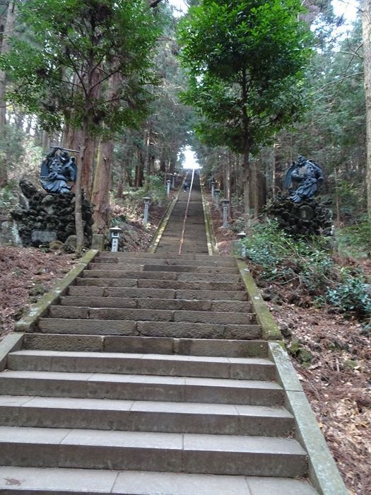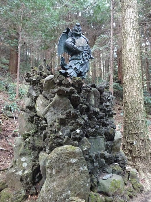 その階段中程の両脇には我々を叱咤激励するように大天狗、小天狗が立っていた。