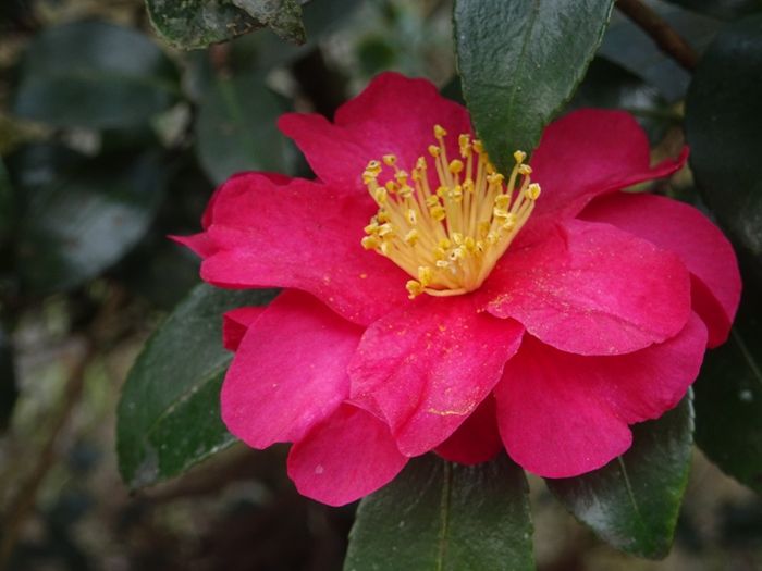 仁王門前の寒椿も可憐な花を。