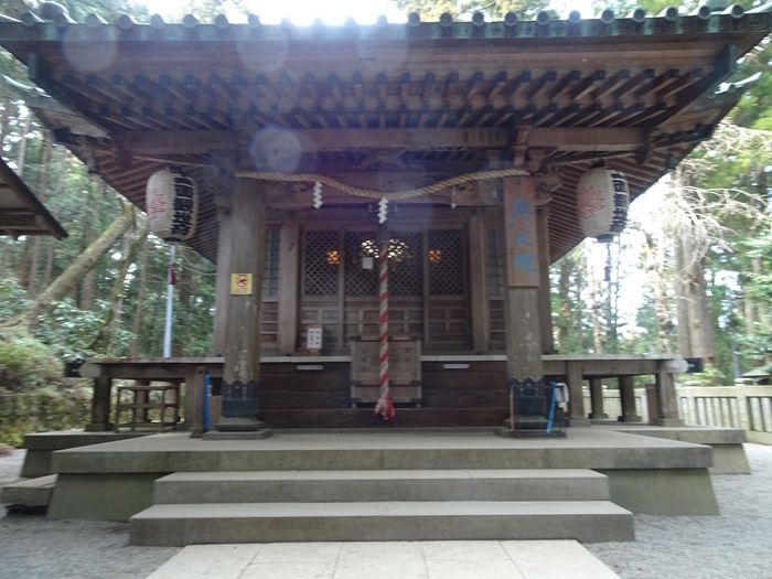 鬱蒼とした老杉に囲れた階段を登りきると、御本地十一面観世音菩薩