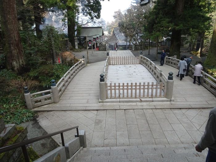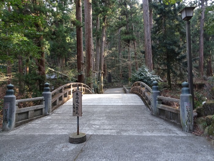 杉の並木の中、参道を下ってい行くと右手に「相性橋」が。
