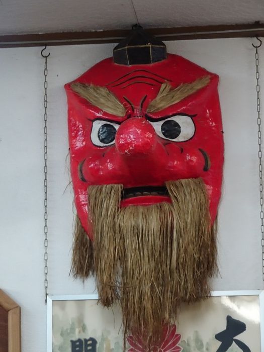 店内の壁には大きな天狗面が。