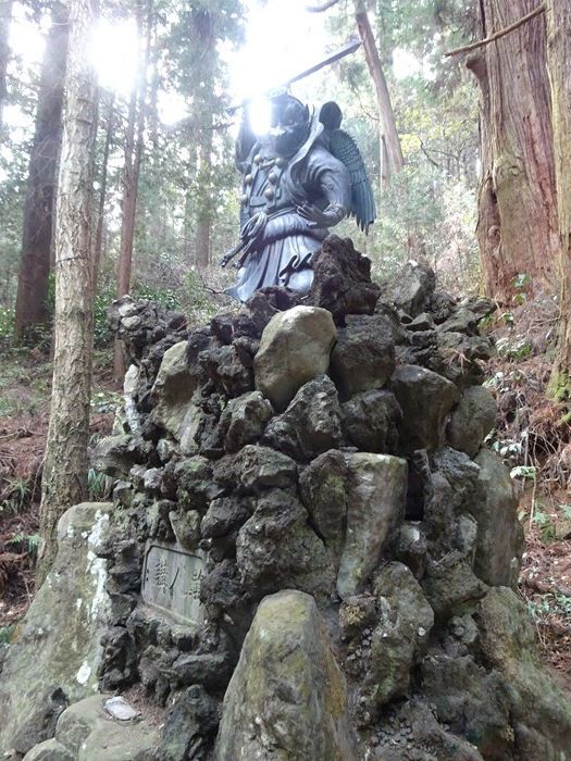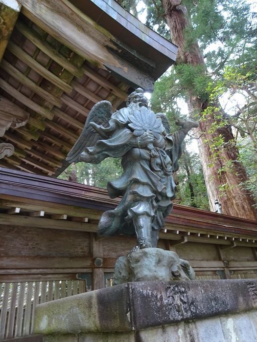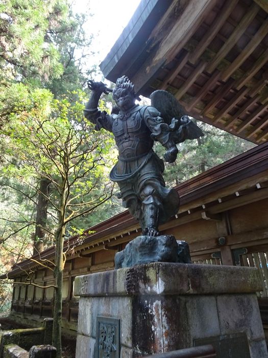 結界門の両脇には、この先の聖地を護る二体の天狗の像が。