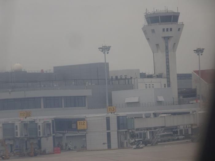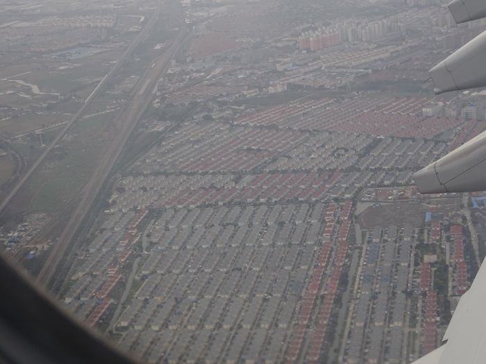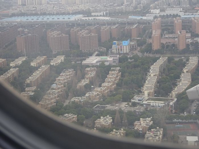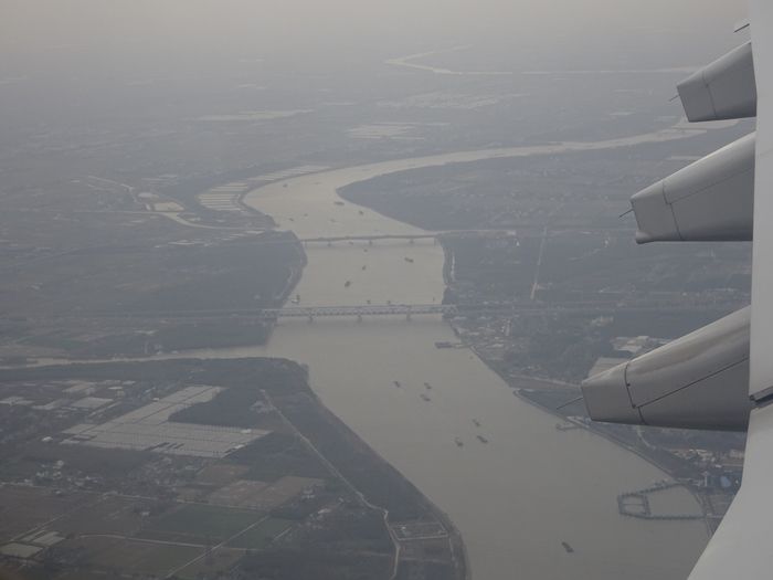 そしてひたすら雲の上を飛び、霞いやスモッグ?のかかった上海上空に。