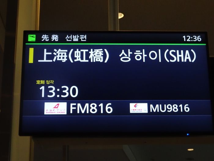 13:30発の上海航空と中国東方航空のコードシェア便(共同運航便)。