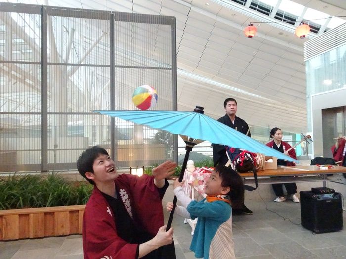 大変縁起の良いものだといわれている「傘回し」に子供も挑戦。