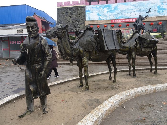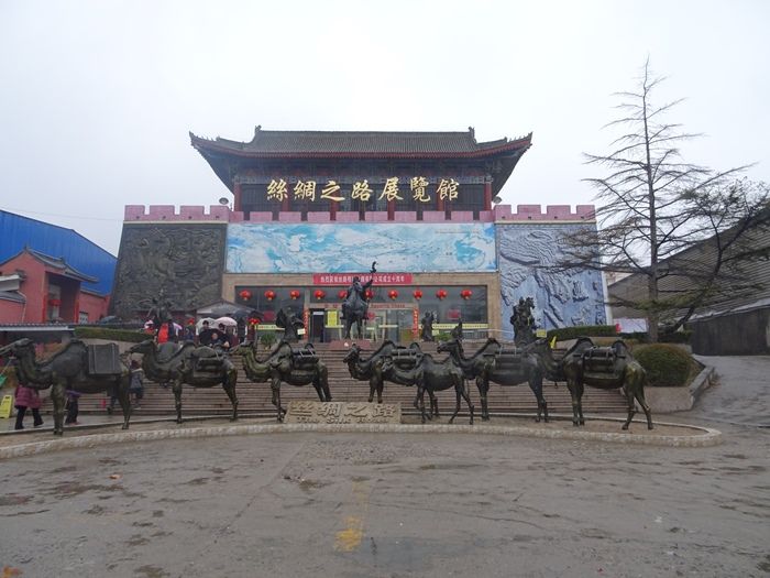 前庭にはシルクロードを移動する駱駝の像が並びシルクロードらしさを演出。