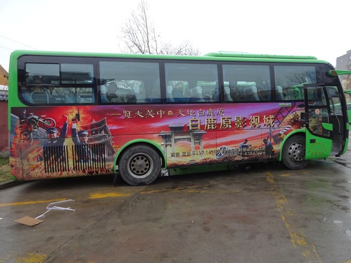 バスのサイドボディーに描かれているのは映画・「白鹿原影視城」のコマーシャル画面か?
