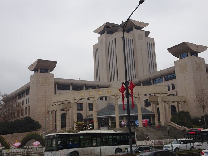 西安市の立派な図書館の隣にある円形の建物で地元の人の姿は皆無。