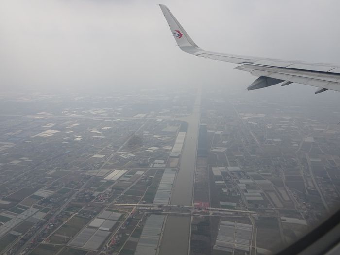 上海浦東国際空港に近づくと多くの運河が見えて来た。