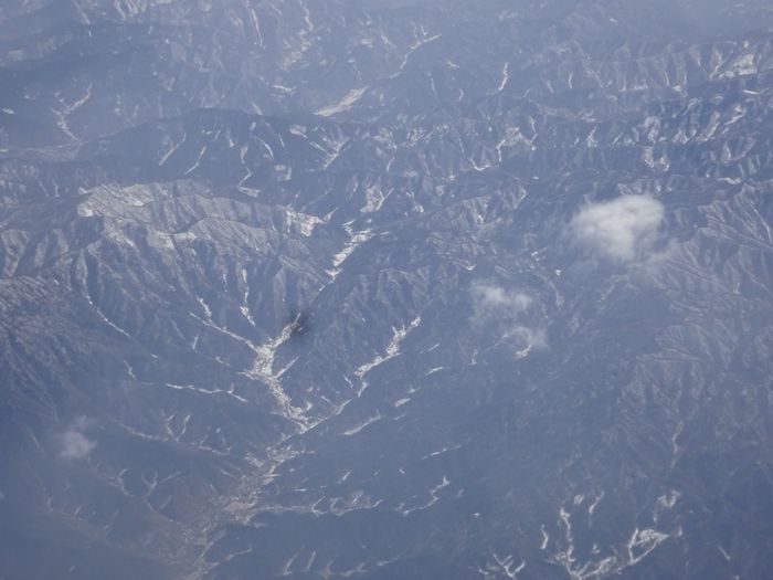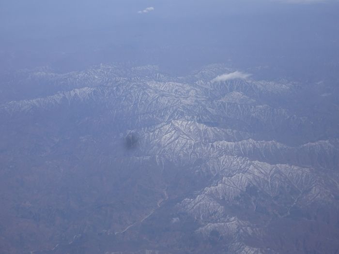 機窓からは白き山々の姿が。