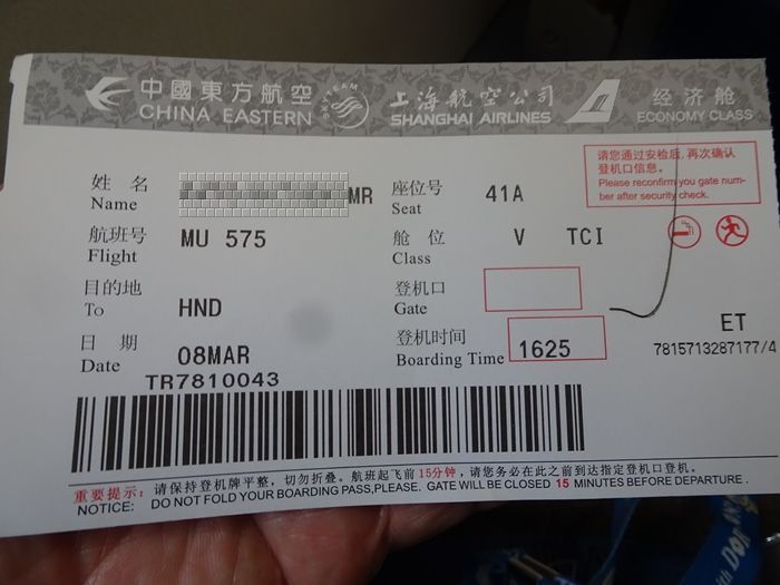そして羽田空港へ向けてのチケット。