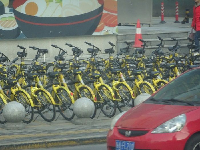 車窓から、レンタサイクルの群れが次々と。
