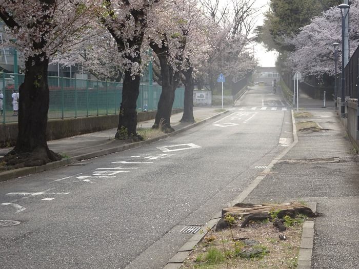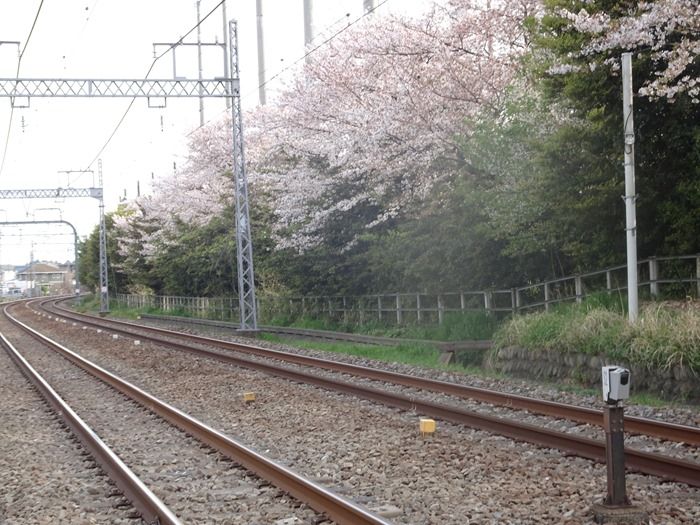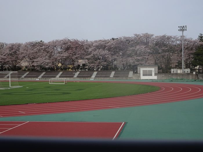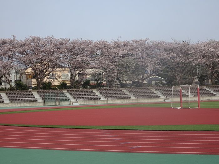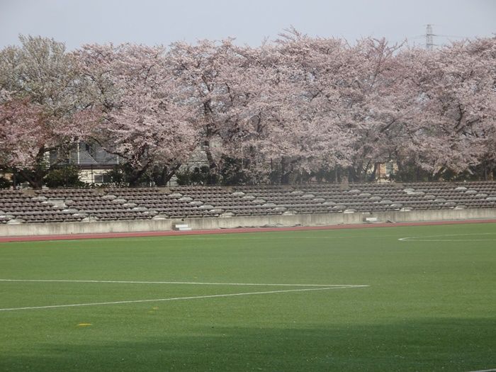 競技場と小田急線線路沿いのソメイヨシノ。
