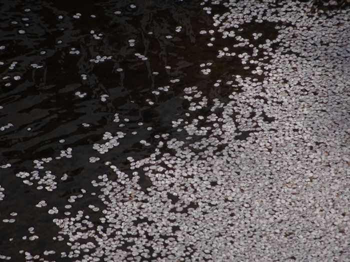 水面には花片が。