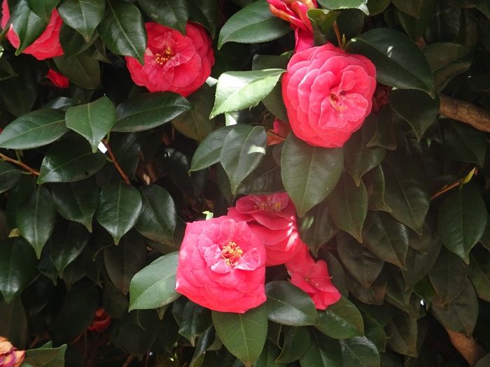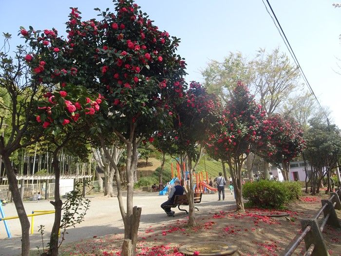 引地川沿いの公園には椿の木々が並んでいた。