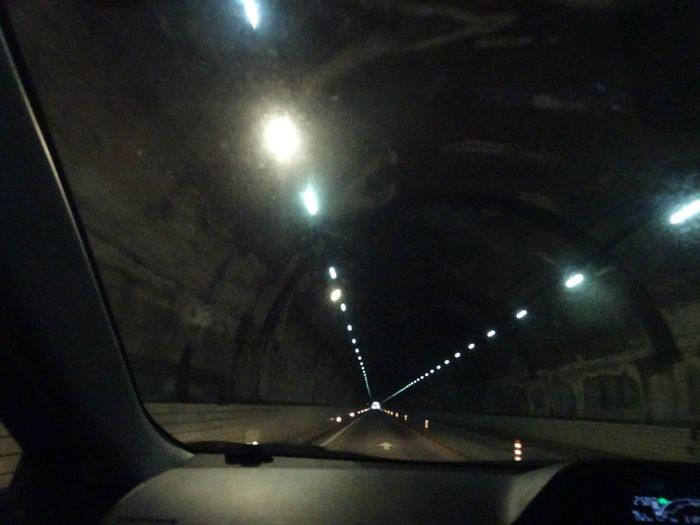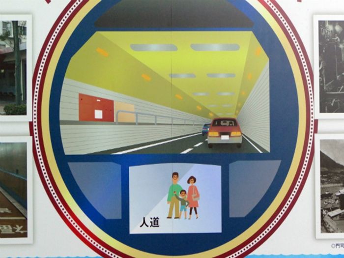 海底に伸びるトンネルは上下に区切られ、上は車道、下は徒歩で通行できるようになっている。
