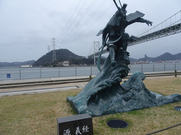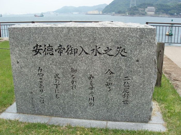 公園内には、源義経・平知盛両雄の像とともに、安徳帝御入水之処碑が配置されており、