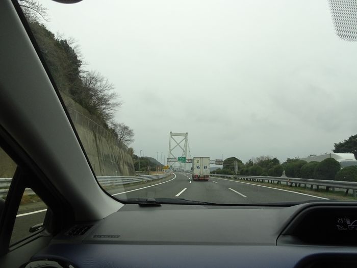 国道9号線を関門海峡沿いに車を進めていくと、前方に関門橋が見えて来た。