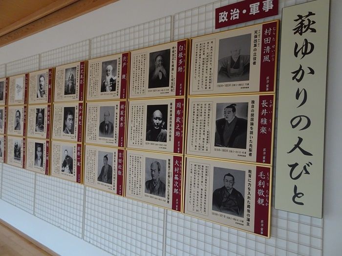 萩の人物コーナーでは、江戸時代末期から現代までの萩ゆかりの人々100人をパネルで紹介。