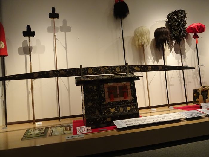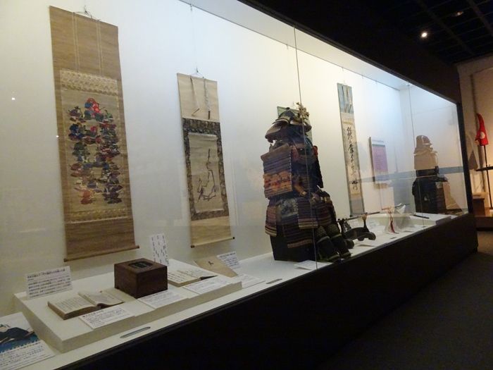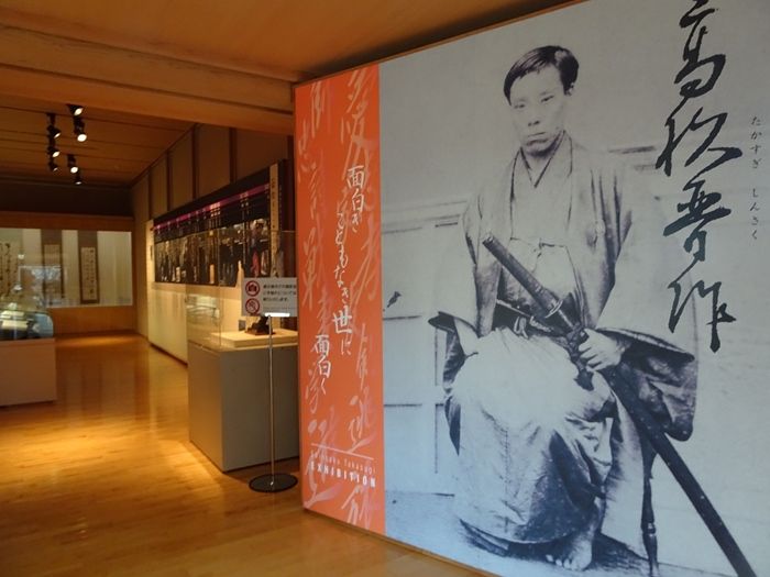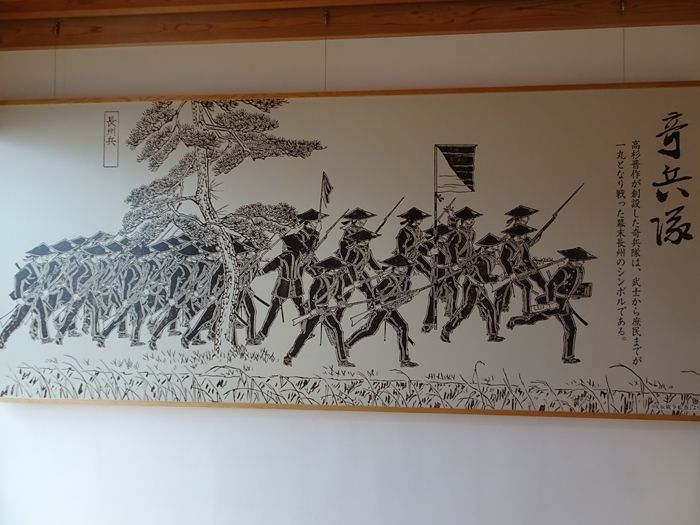 高杉晋作の甲、愛用の道中三味線や瓢箪、奇兵隊軍旗などが展示されていた。