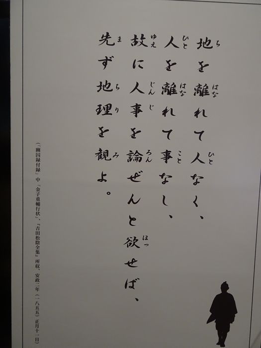 「地を離れて人なく、人を離れて事なし。故に人事を論ずずれんと欲せば、 先ず地理を観よ」。