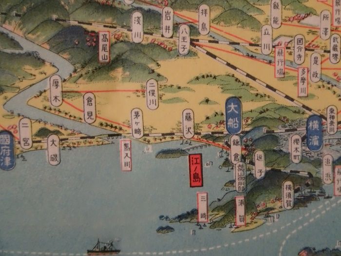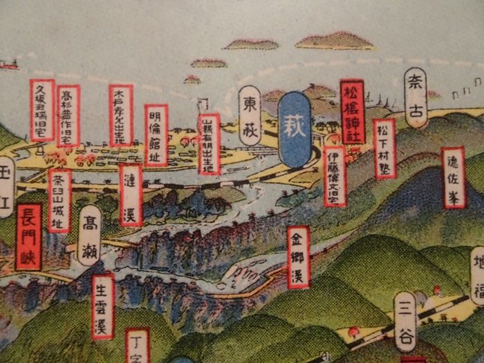 日本鳥瞰四国中国大絵図に描かれた萩周辺の街。