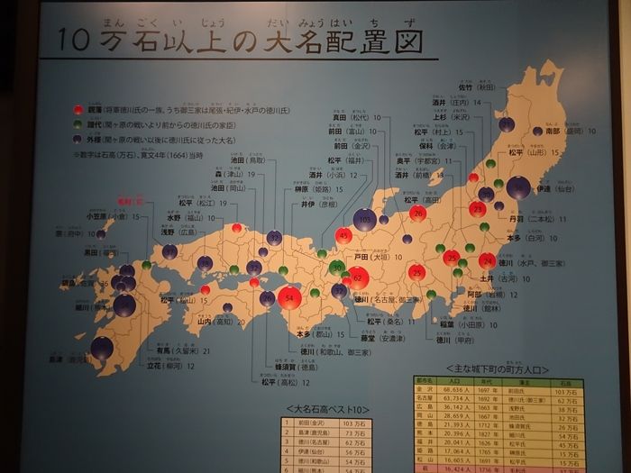 10万石以上の大名配置図(寛文4年(1664年)当時)。