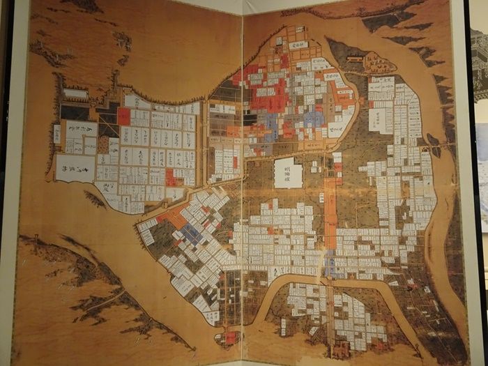 萩城下町の中央部に設置されていた長州藩(萩藩)の藩校明倫館の鳥瞰図。